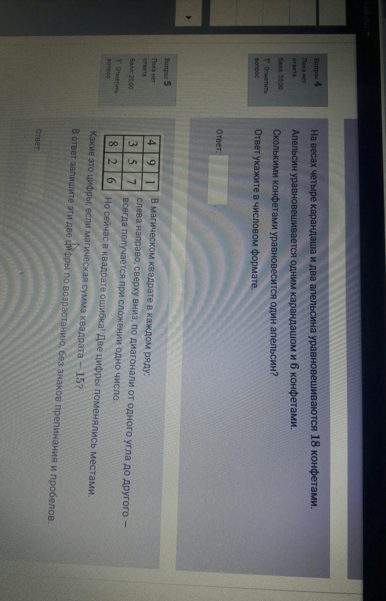 Вопрос 4. Ответ: 1 апельсин = 7 конфетам
