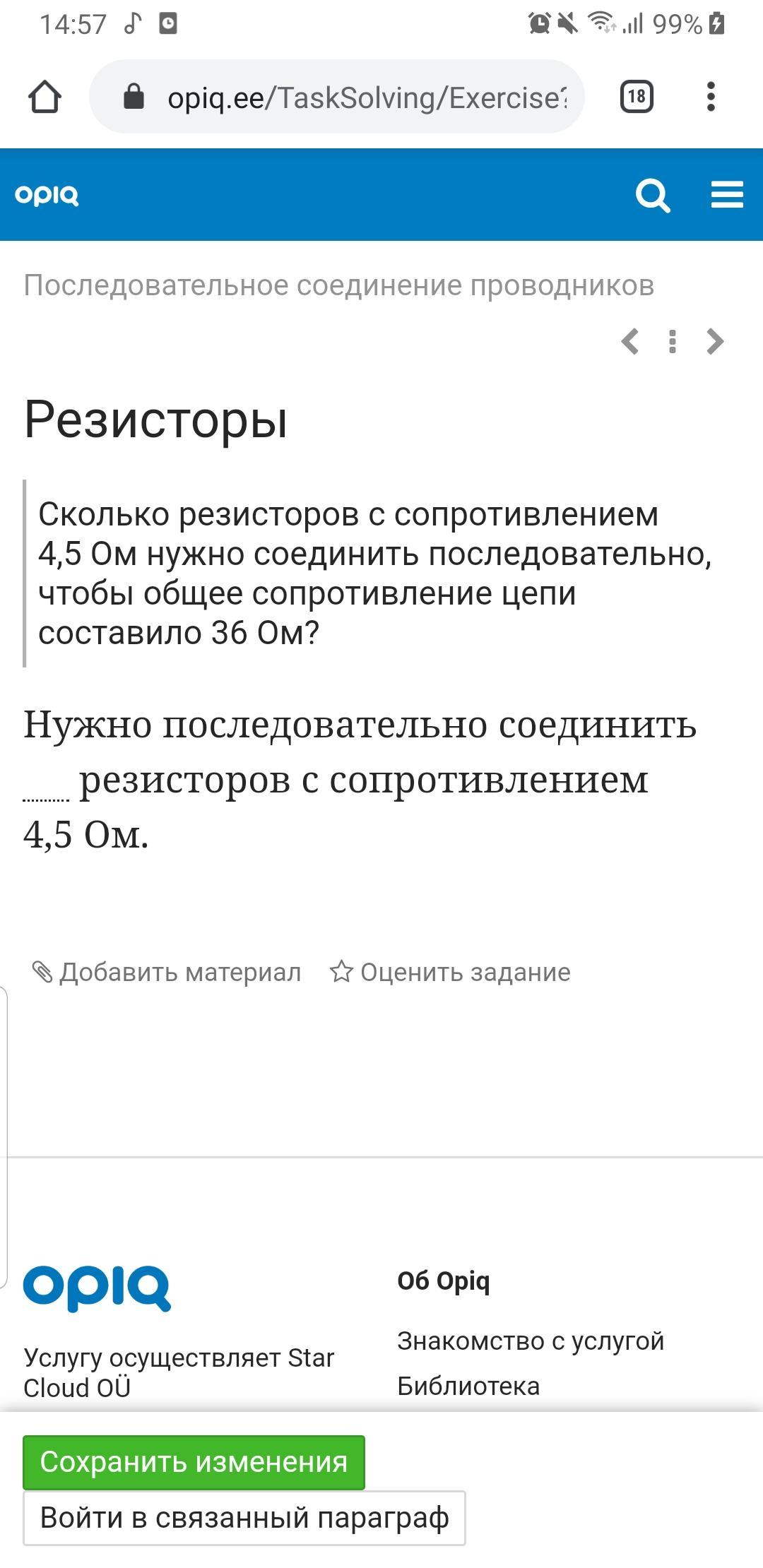Сколько резисторов с сопротивлением 4,5 Ом нужно соединить последовательно, чтобы общее сопротивление цепи составило 36 Ом?