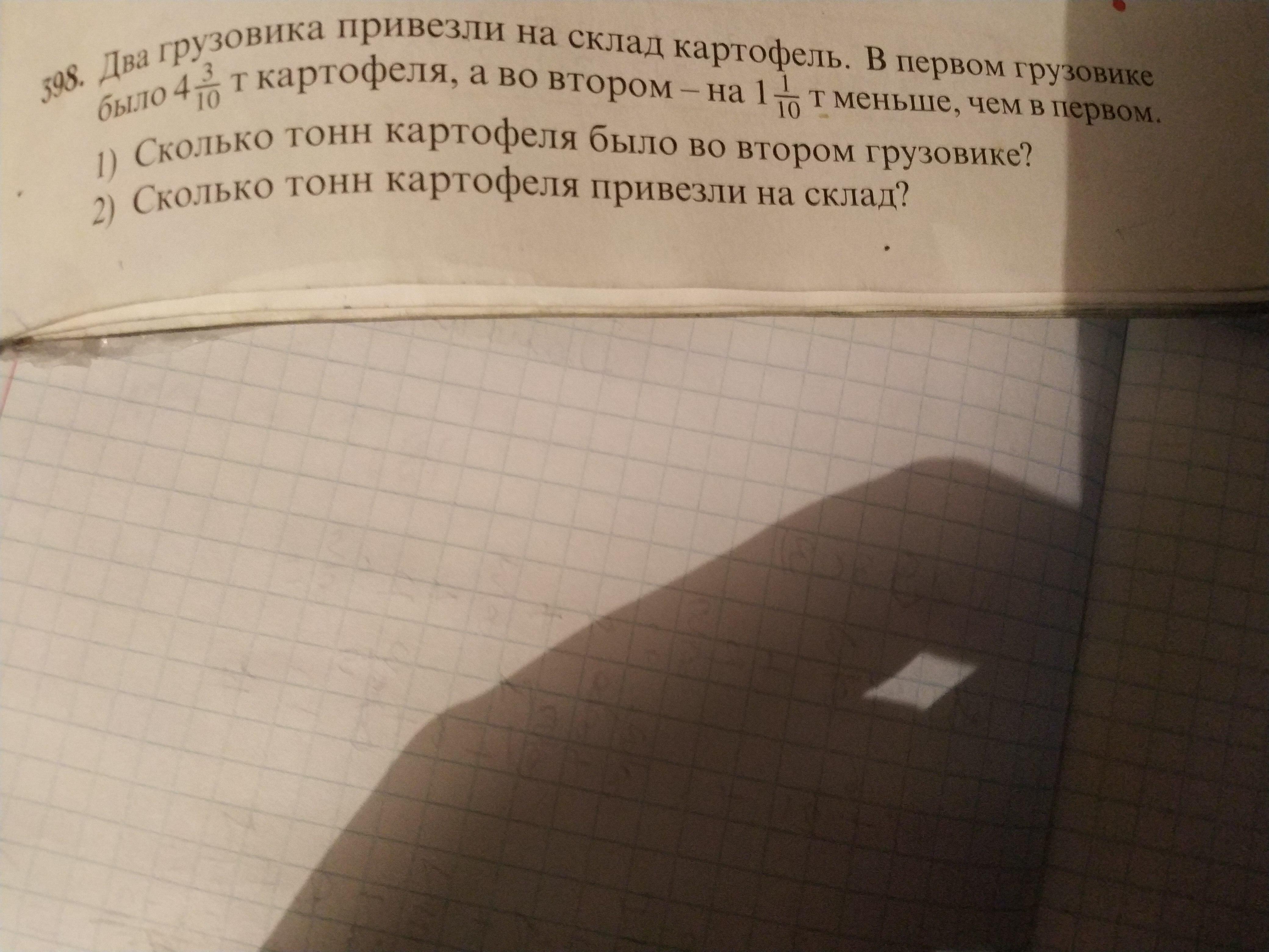 Ответ:во втором грузовике 3 целых 2/10 тонн картофеля.