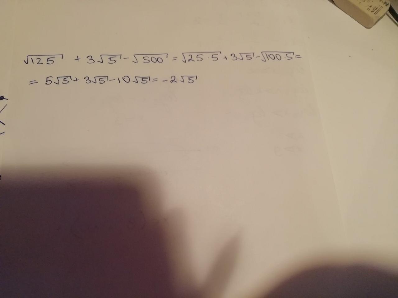 √125+3√5-√500= √25*5 + 3√5- √100*5= 5√5+3√5- 10√5= -2√5