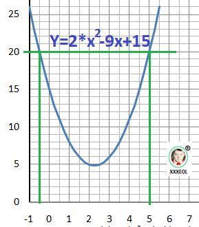 y ≥ 20 при х ∈(-∞;- 0.5]∪[5;+∞)
