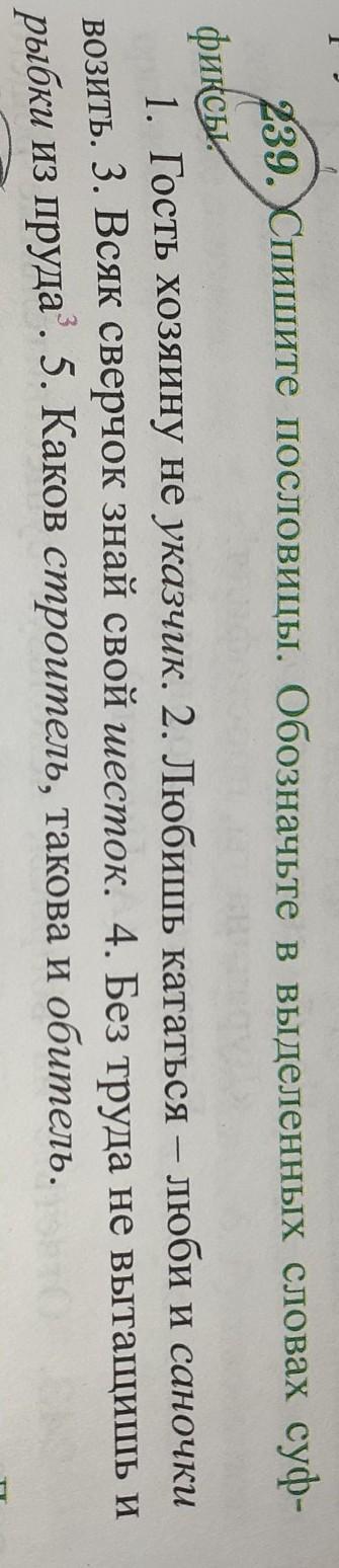 Указчик (суф. - чик); саночки (суф. -оч и - к); шесток (суф. - ок); рыбки (суф. - к) ;строитель (суф. - и и - тель) ; обитель (суффикса нет).