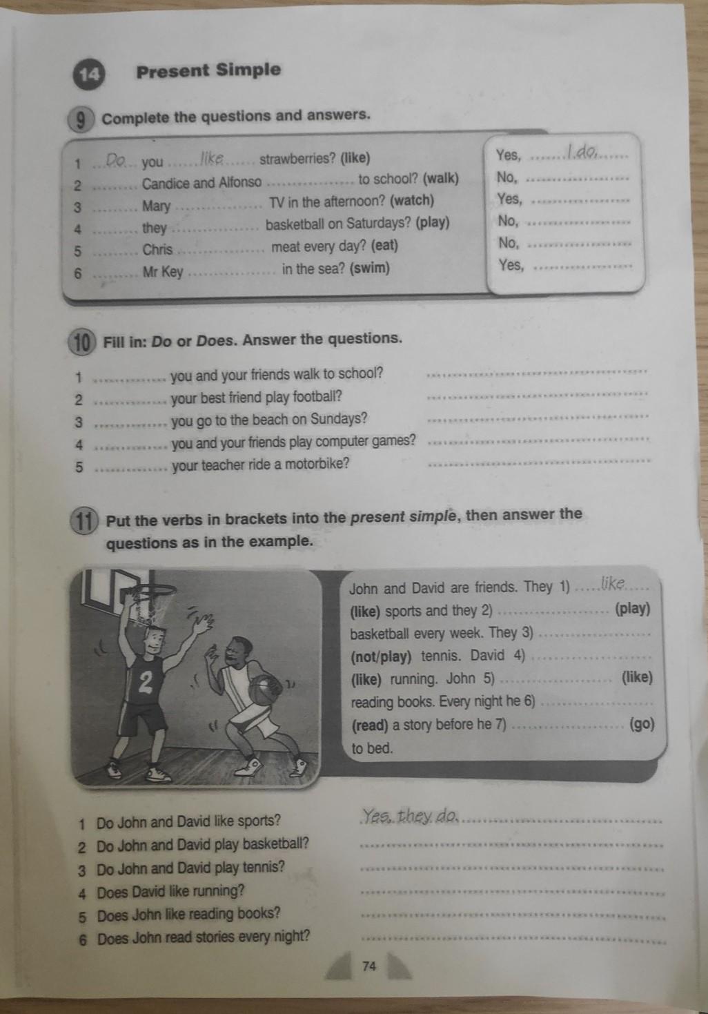 11. 1) like, 2) play, 3) don't play, 4) likes, 5) likes, 6) reads, 7) goes