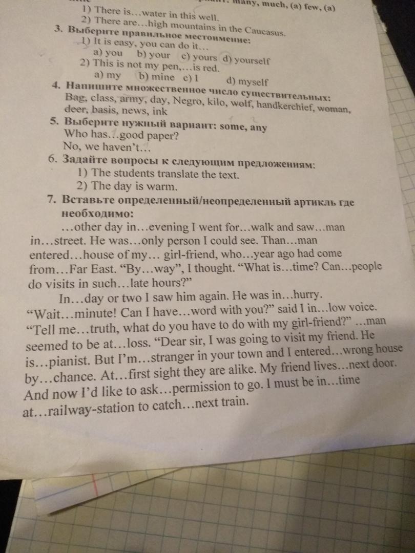 The other day in the evening I went for a walk and saw a man in the street. He was the only person I could see. Than the man entered the house of my girl-friend, who a year ago came from the Far East. "By the way", I thought. "What is the time? Can people