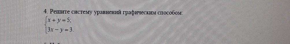 4Решите систему уравнений графическим способом Икс плюс игрек равно 5 Икс минус игрек равно 3