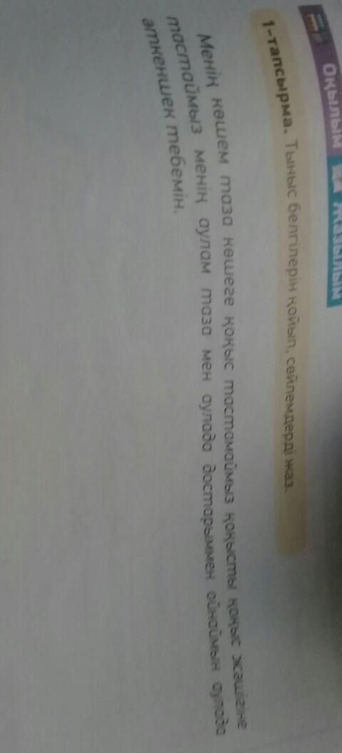 Менің көшем таза. көшеге қоқыс тастамаймыз, қоқысты қоқыс жәшігіне тастаймыз. Менің аулам таза. Мен аулада достарыммен ойнаймын, аулада әткеншек тебемін.