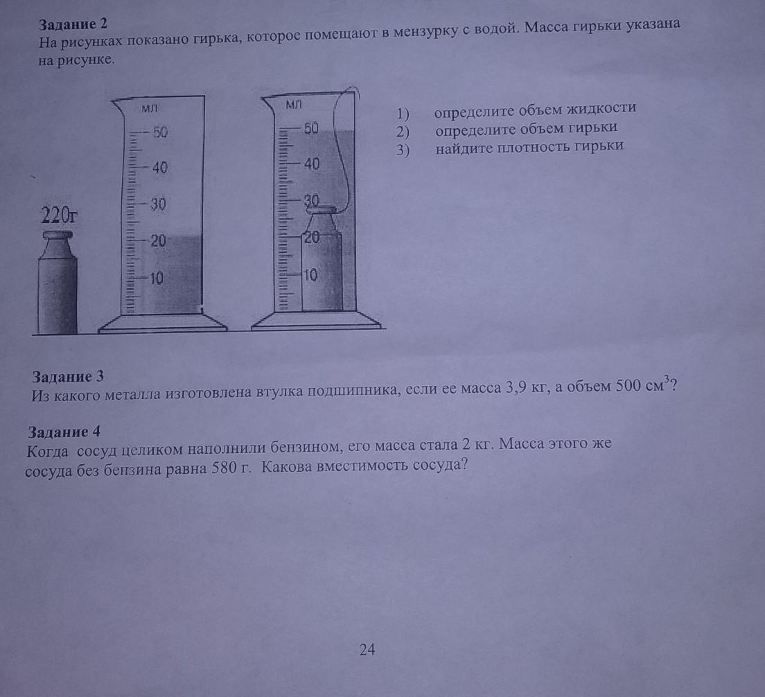 2)объём гирьки=49(см.на последний рисунок)-20=29мл