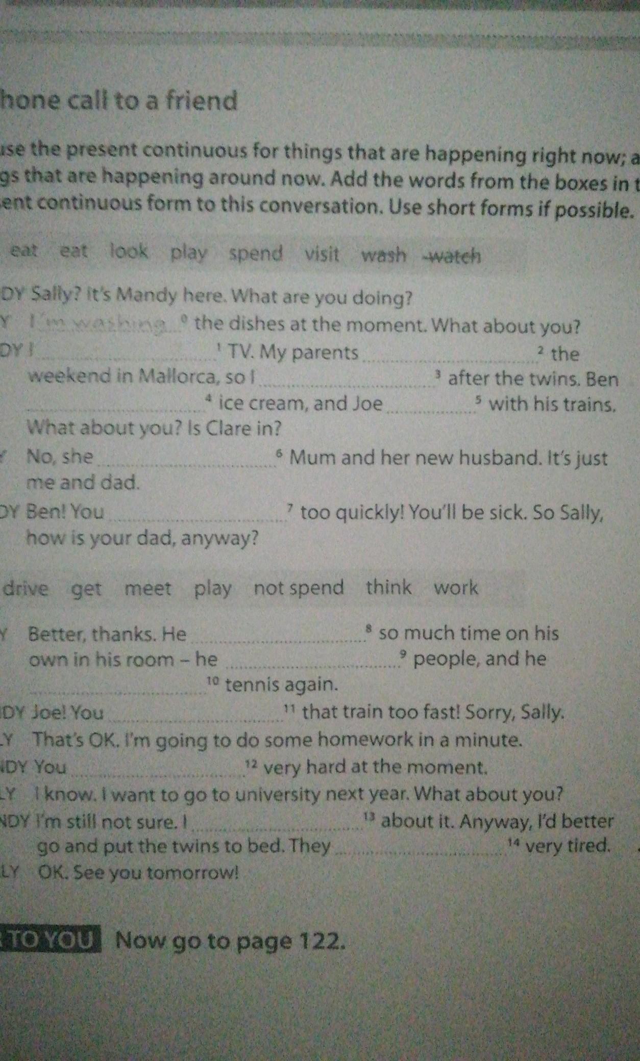 Если я не Ошибаюсь то надо вписать слова в present continuous.