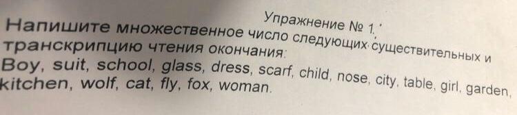 Напишите множественное число следующих существительных и транскрипции чтение окончания