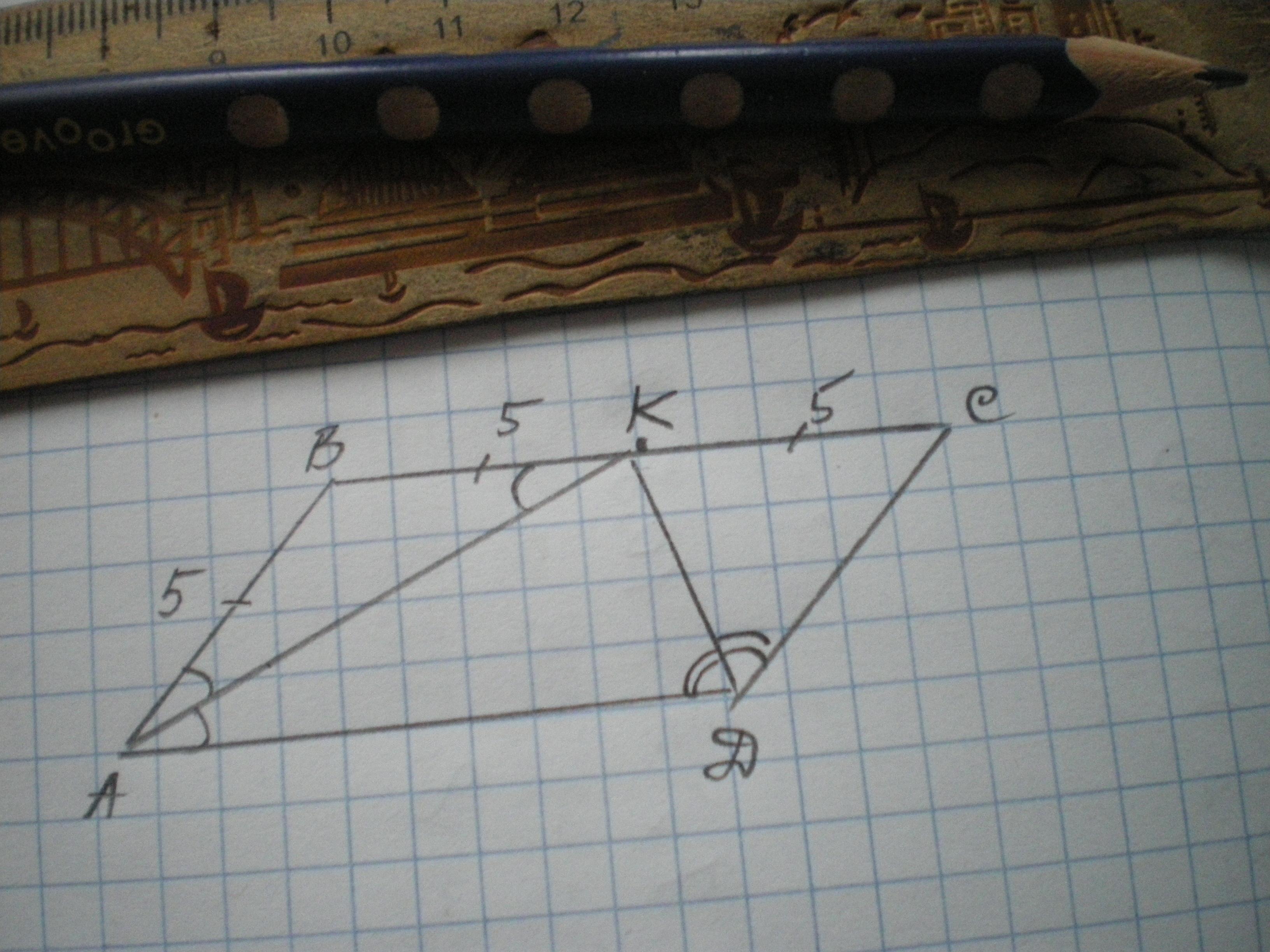 Дано: АВСD - параллелограмм, АК и DК - биссектрисы, ВК=КС. АВ=5 см. Найти АD.
