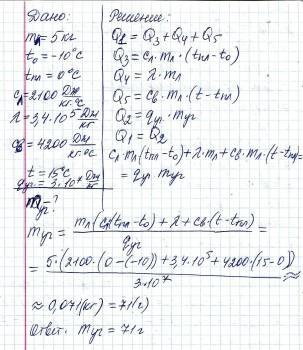 У полярних умовах прісну воду добувають з льоду. Скільки кам'яного вугілля потрібно витратити, щоб 5кг льоду, взятого при - 10°С, перетворити у воду 15°С