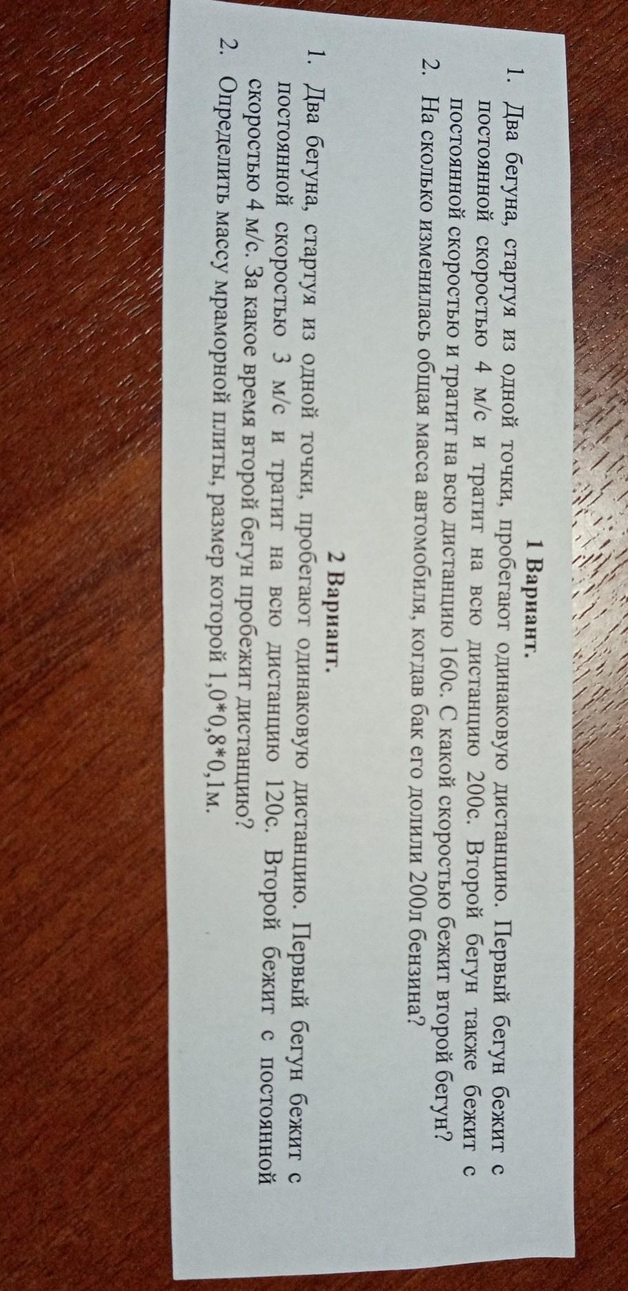 1) дано: v1 = 4м, t1 =200c, t2 = 160c, найти v2. Решение: S=vt=200*4=800, v2=S/t=800/160=5м/с