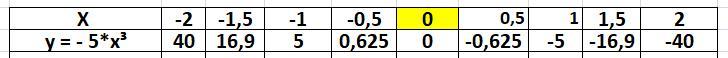 Видим, что это нечётная функция. Значит она симметрична точке О(0;0) и точки для построения выбираем также симметрично 0.