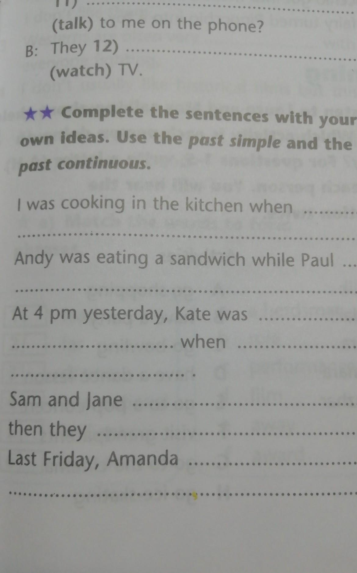 Complete the sentences with your own ideas. Use the past simple and past continuous.