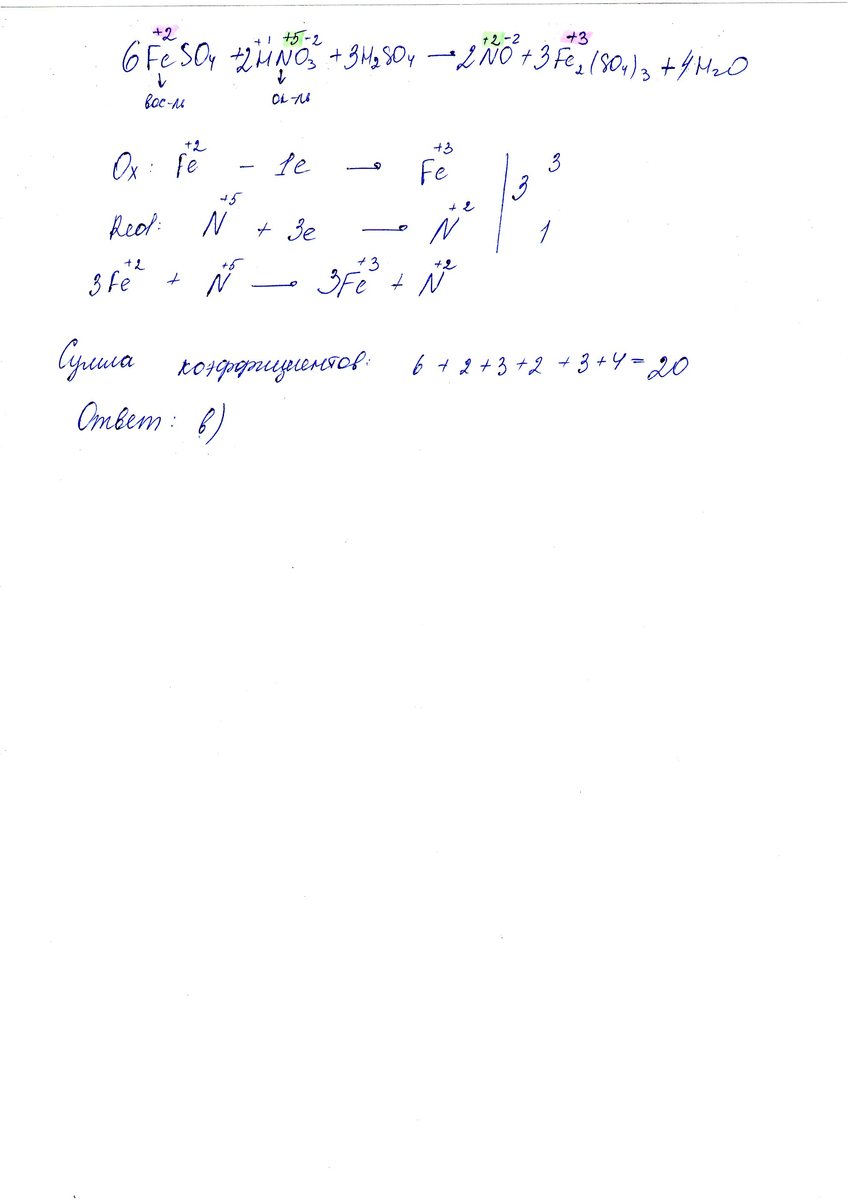 FeSO4 + HNO3 + H2SO4 → NO + Fe2(SO4)3 + … равна: