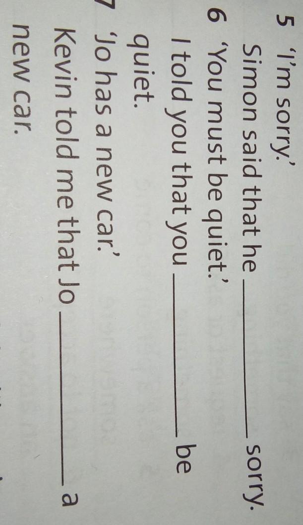 6 I told you that you must be quiet. (***must заменяется в косвенной речи на had to, если must выражает необходимость совершения действия в силу определенных обстоятельств, но в данном случае must выражает приказание/совет, поэтому остается без изменения)
