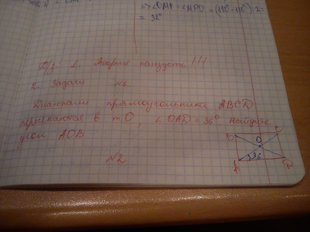 У прямоугольника угол 90 гр. Он рассечен, одна часть 36 гр., значит сопряженный угол 60 гр (90-36)