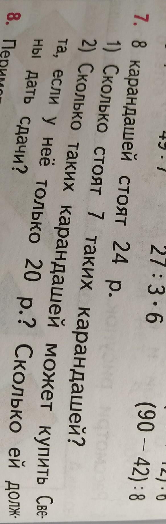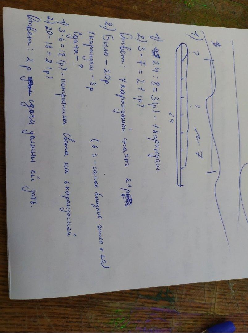 2. Из 20 ближайшее делится на 3 только 18, значит 18:3 =6 Света сможет купить 6 карандашей и сдача 2 рубля
