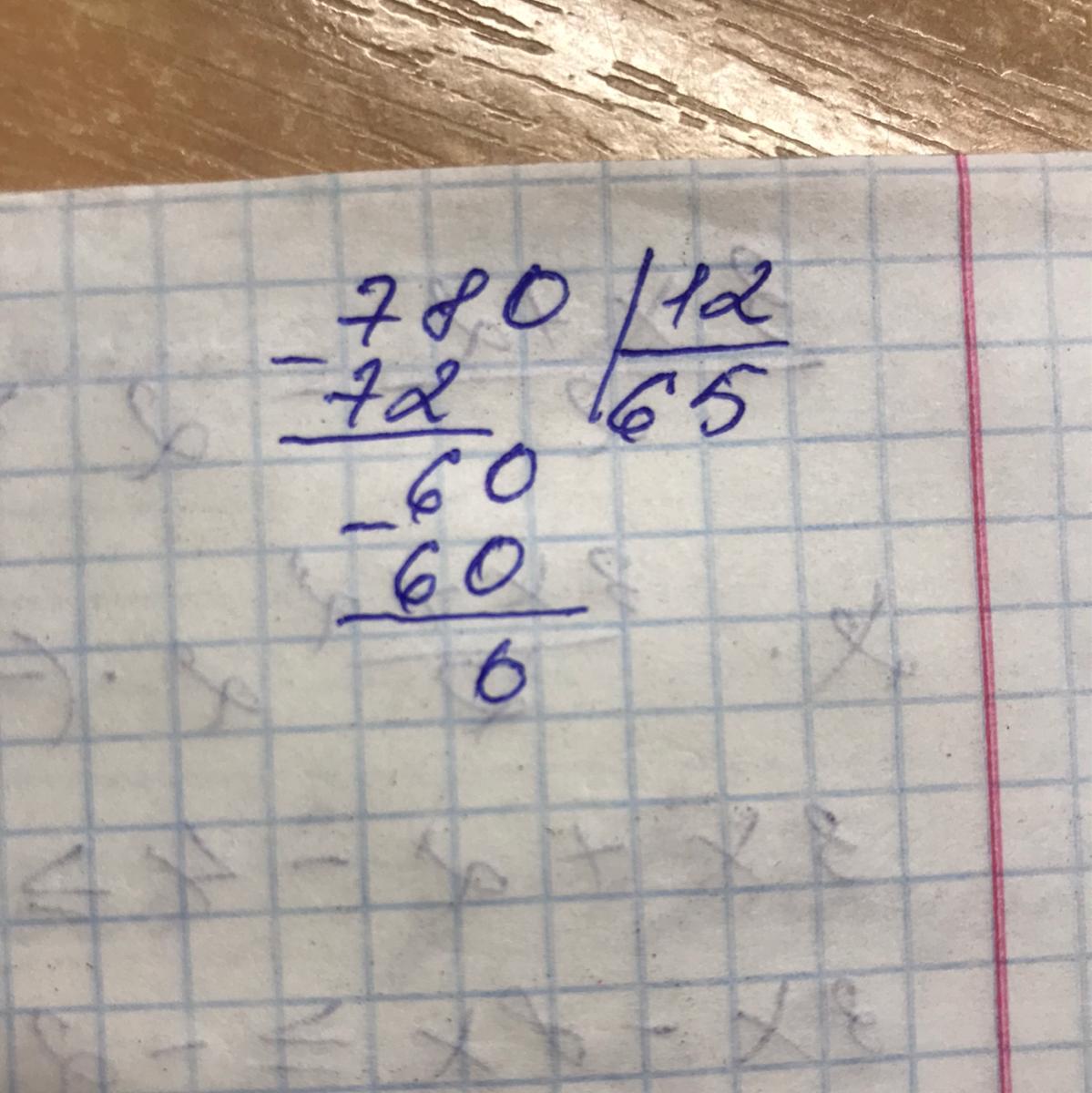 78:12=6(6 записываем)6*12=72(72 записываем и отнимаем от 78)получаем 6(записываем под черточкой)0 сносим вниз,60:12=5(5 записываем)5*12=60(60 записываем и отнимание от 60)0 записываем под черточкой.Все