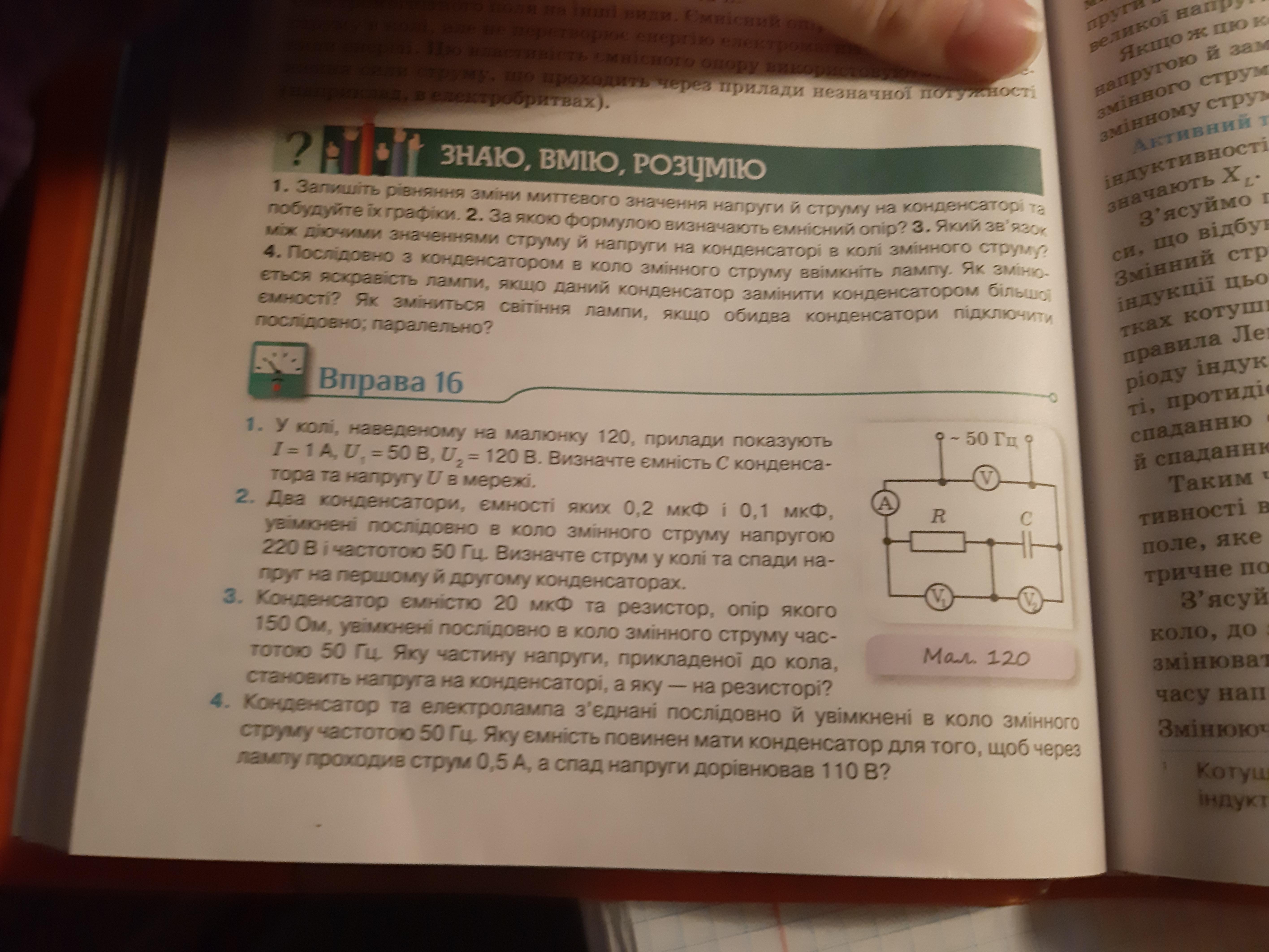 из U2=I*Xc , Хс=120ом, С=( 1/120)/314=2.65*10-5Ф