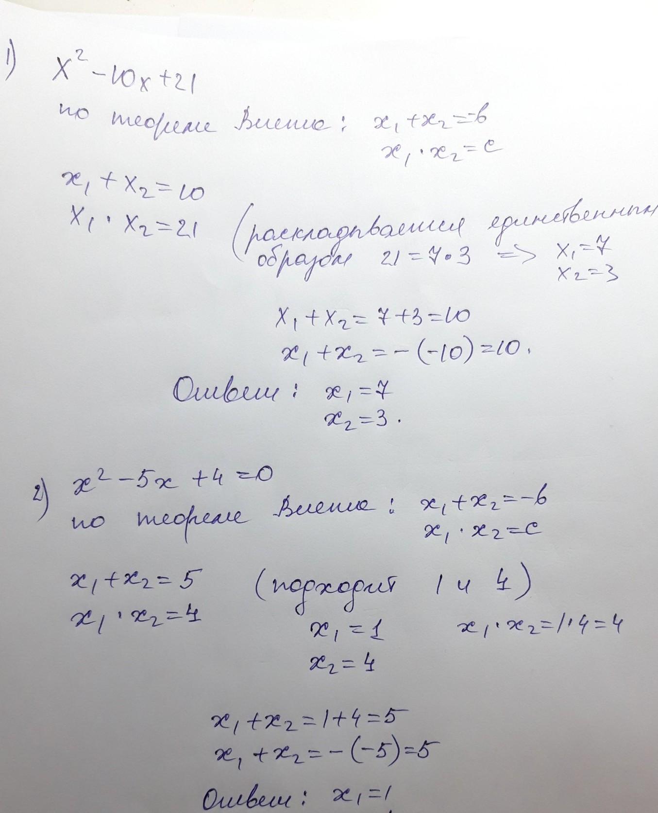 х1+х2=5; х1*х2=4 => х1=1; х2=4