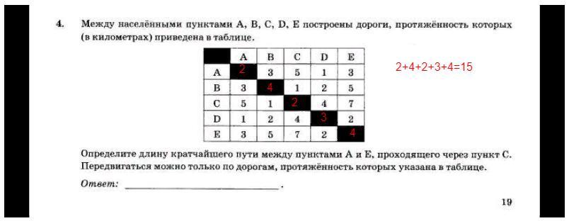 A-B-E-F. Длина маршрута 4 + 6 + 5 = 15