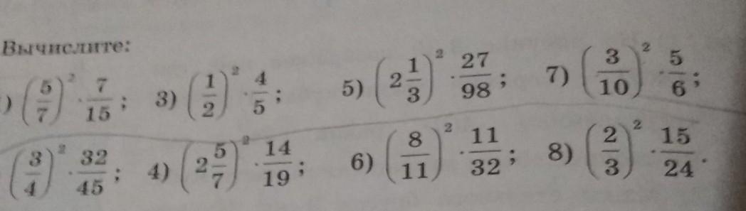 1) (5\7)^2 * 7\15 = 25\49*7\15 =5\7*1\3 = 5\21