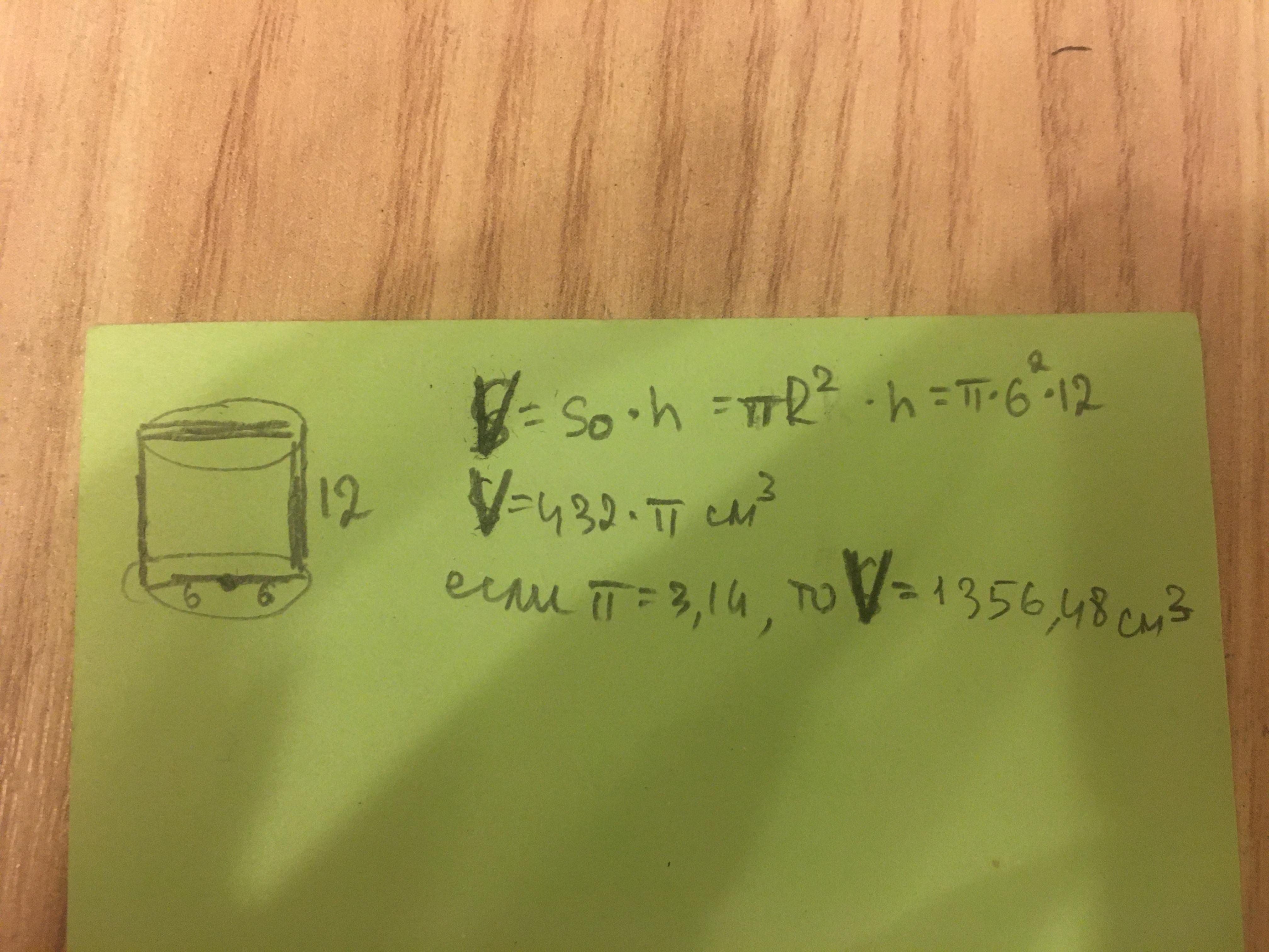 если п=3,14, то ответ: 1356,48 см^3