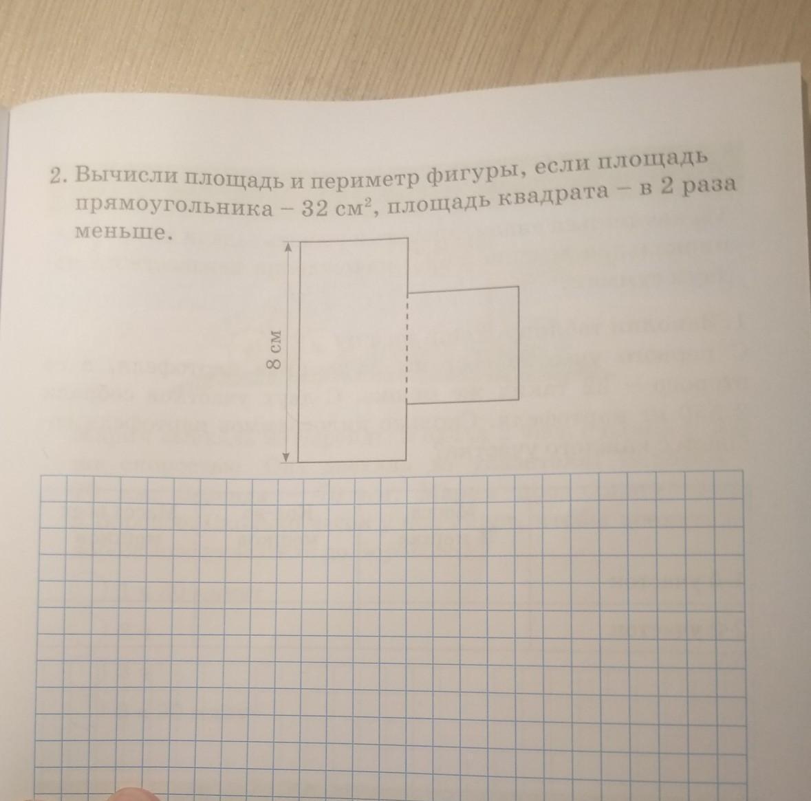 так как не учитывается сторона соприкосновения квадрата и прямоугольника. Тогда Р фигуры = 20+12 = 32 см