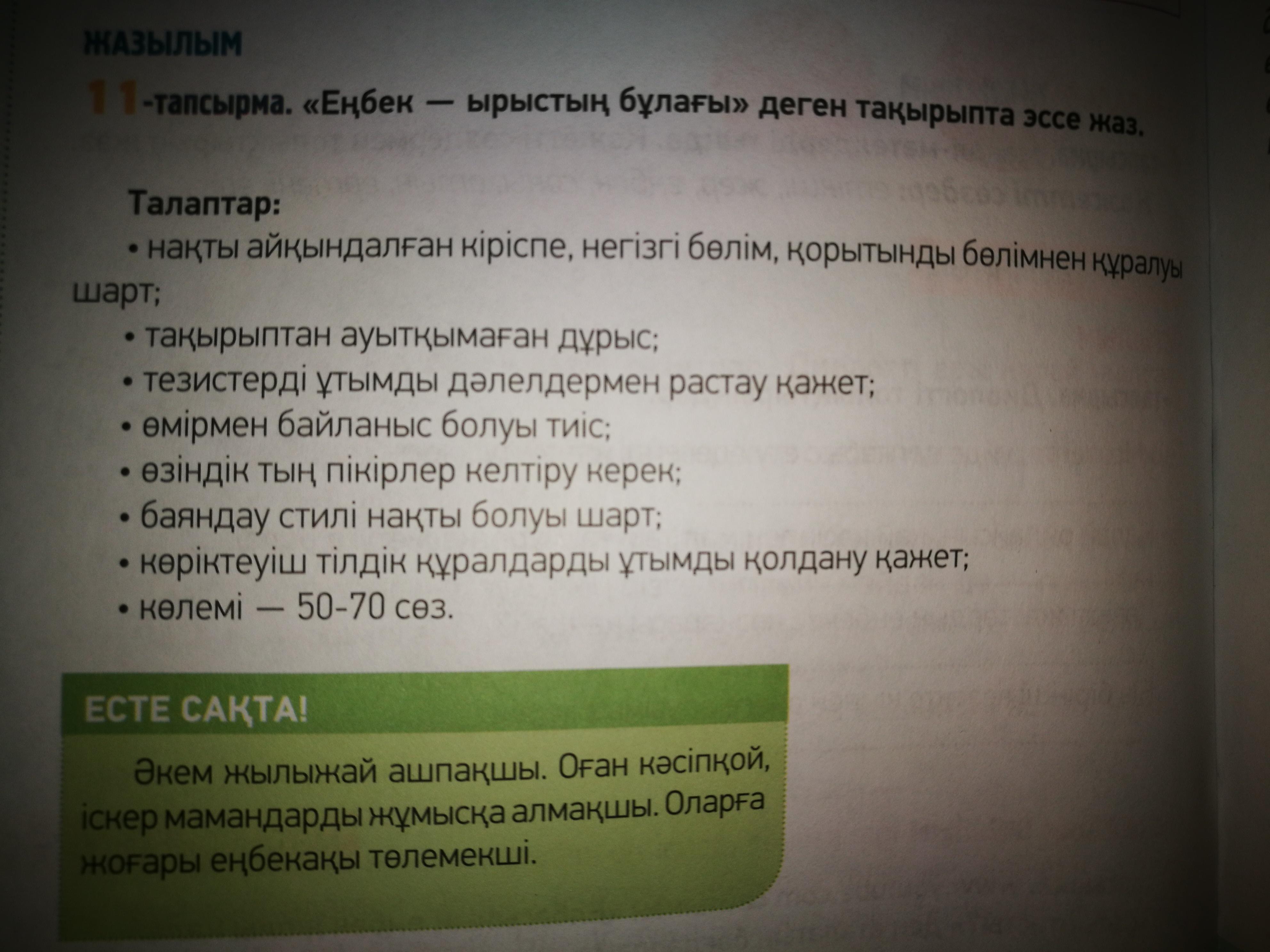 Еңбек - әр адамның бүкіл өмірі тығыз байланысты болатын өте маңызды фактор. Адам өзін және отбасын лайықты өмір сүру деңгейімен қамтамасыз ету үшін жұмыс істейді. Әрқайсысымыздың өмірінде жұмыс істейтін жастар, жасөспірімдер мектепке барғанда, жас ерлер мен әйелдер таңдаған мамандық бойынша жұмыс істей бастайды.