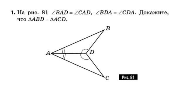 СЛЕДОВАТЕЛЬНО: треугольник ABD и треугольник ACD равны по 2 признак равенства треугольников(УСУ).