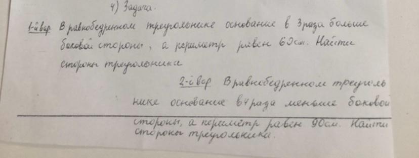 Основание в 3 раза больше⇒основание берём 3х,так же из условия нам сказано,что это р/б треугольник,а снование больше стороны⇒две другие стороны по иксам.