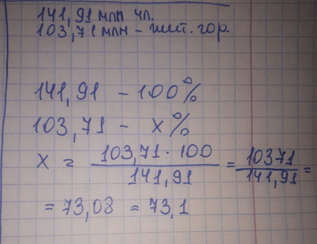 1) х = (103,710,000 * 100)/ 141,910,000 =