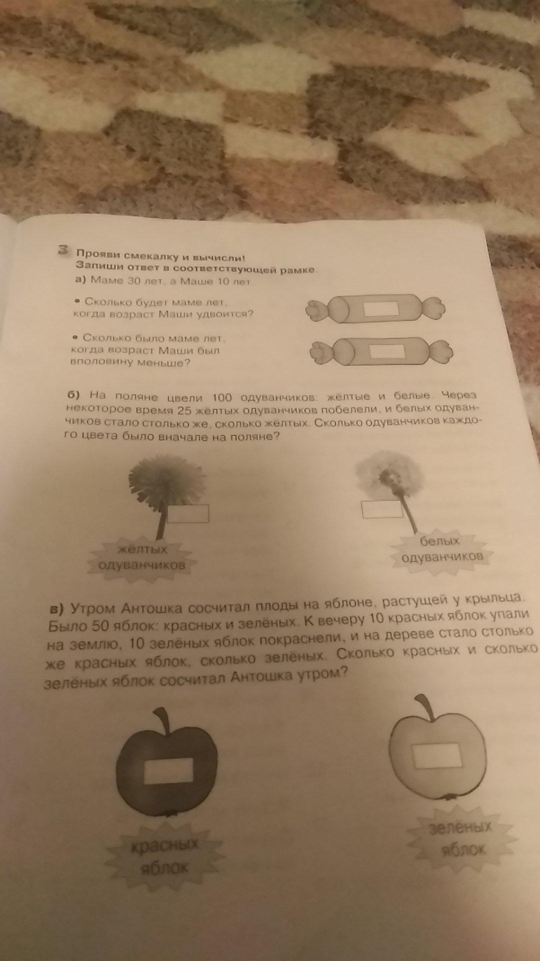 2) половина это 1/2 значит Маше было 5 лет, а это половина десяти и возраст уменьшился на 5 лет собственно у мамы тоже самое значит маме 25 лет.