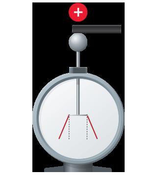 Если касаются шарика электроскопа заряженным телом, листочки электроскопа занимают указанное на рисунке положение. Начальное положение листочков показано пунктиром. Необходимо определить, как был заряжен электроскоп в начале эксперимента.