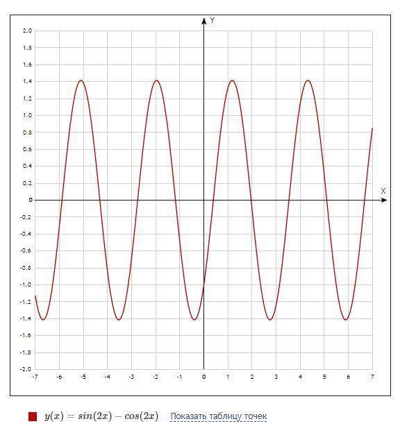 y=sin2x-cos2x = cos(pi/2-2x) - cos 2x = -2sin(pi/4) sin((pi/4 -2x) =