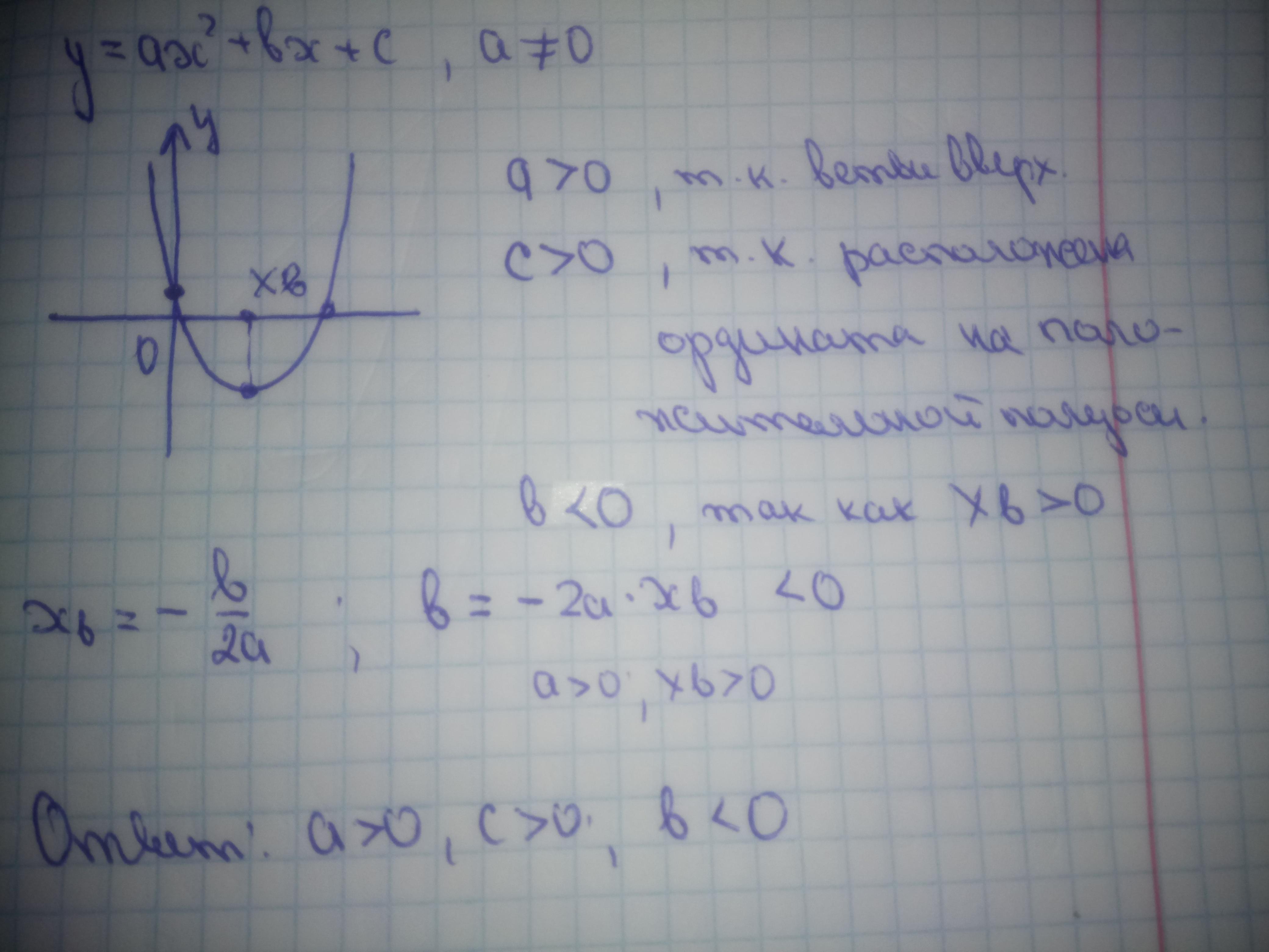 a>0, b<0, c>0. Пояснение на фото.