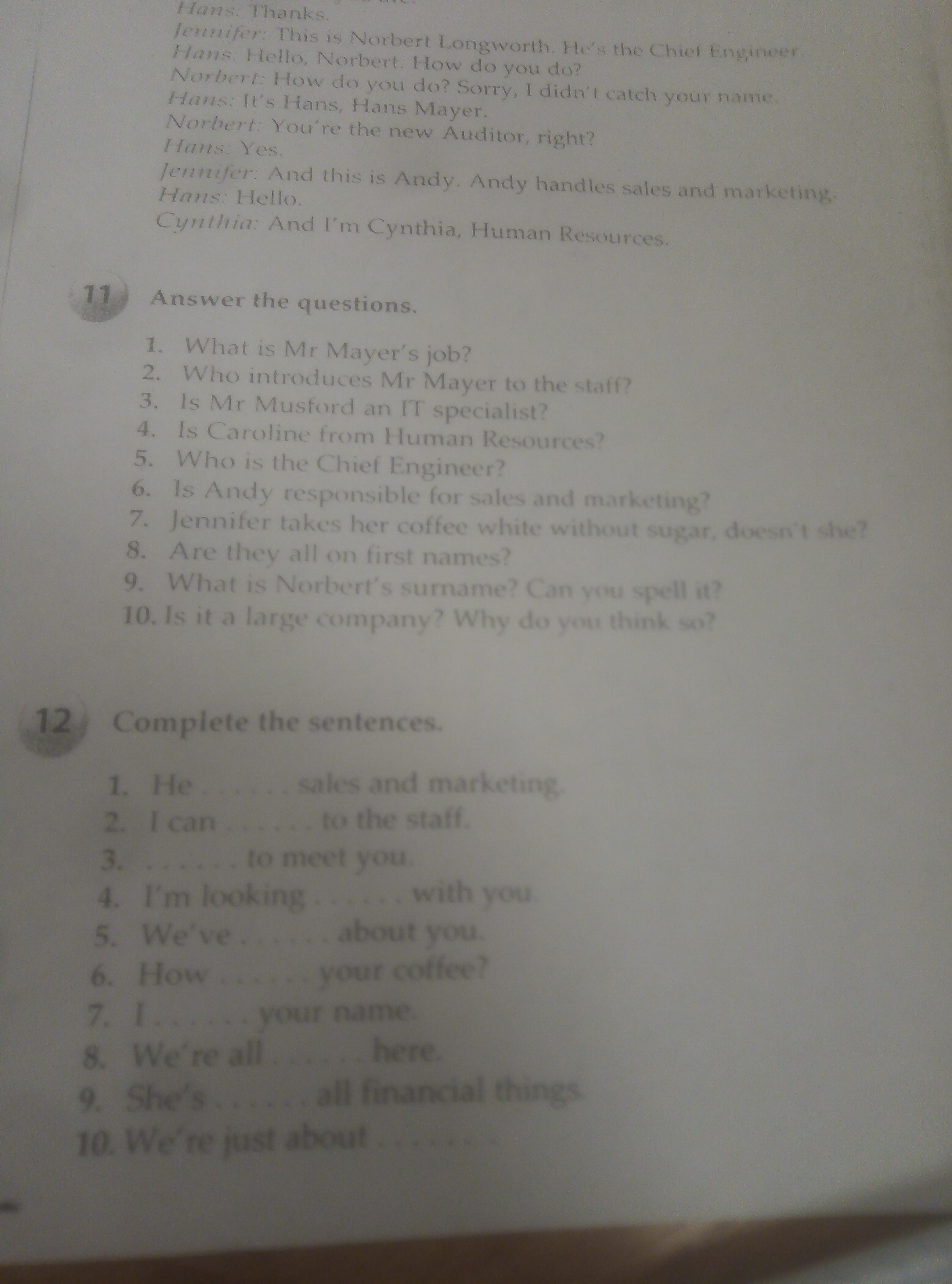 2. Who introduces Mr Mayer to the staff? Jennifer.