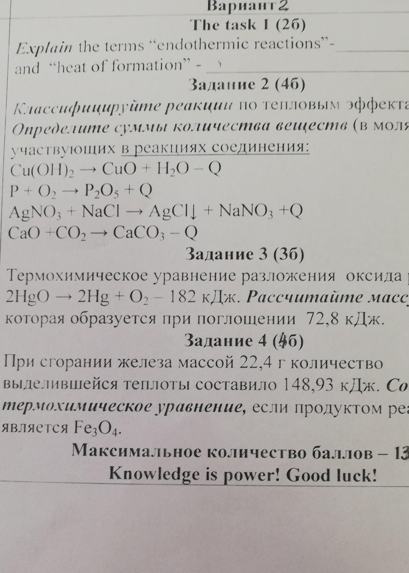1)Эндотерми́ческие реа́кции — химические реакции, сопровождающиеся поглощением теплоты