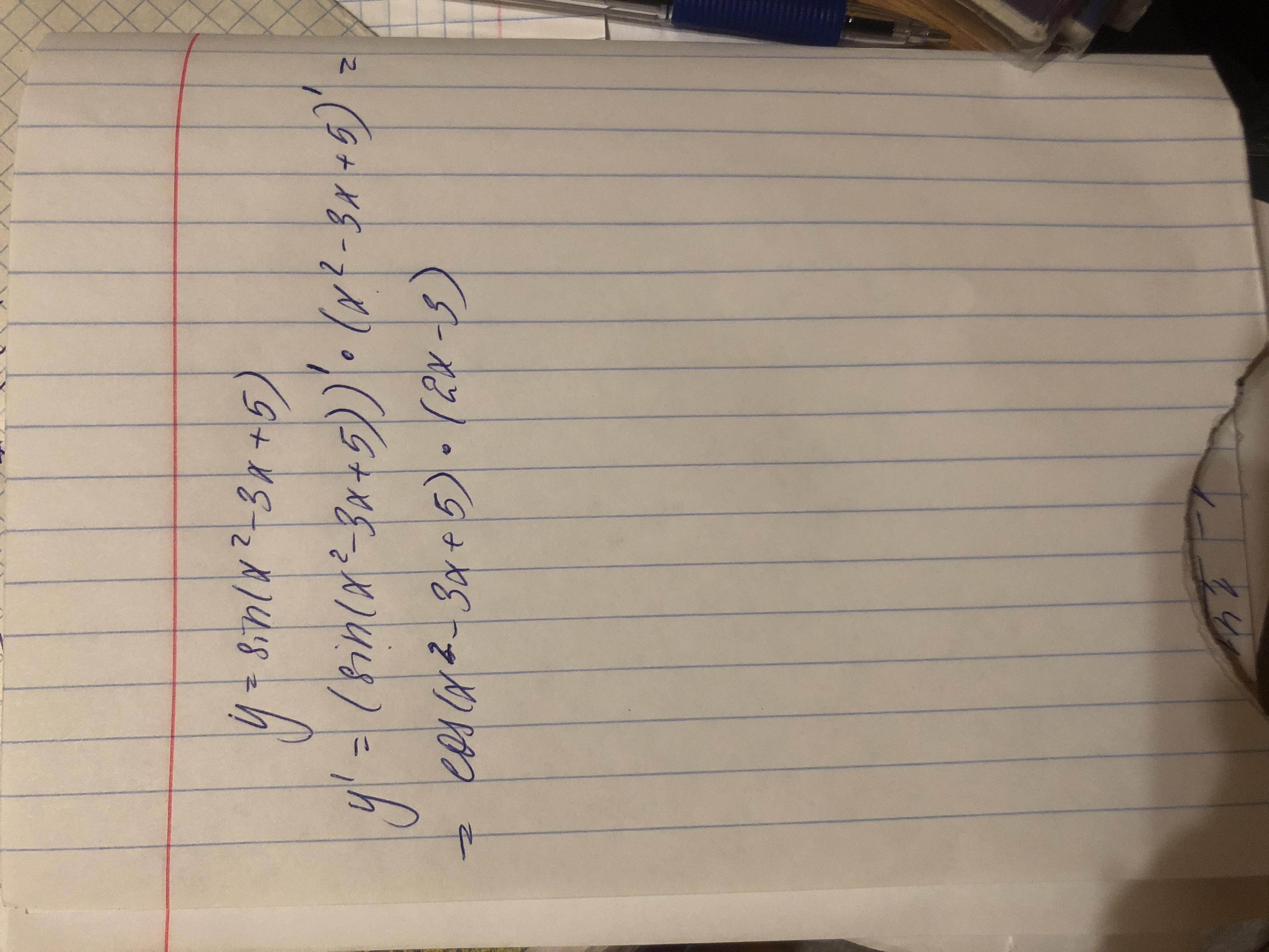 Ответ: cos(x^2-3x+5)*(2x-3)