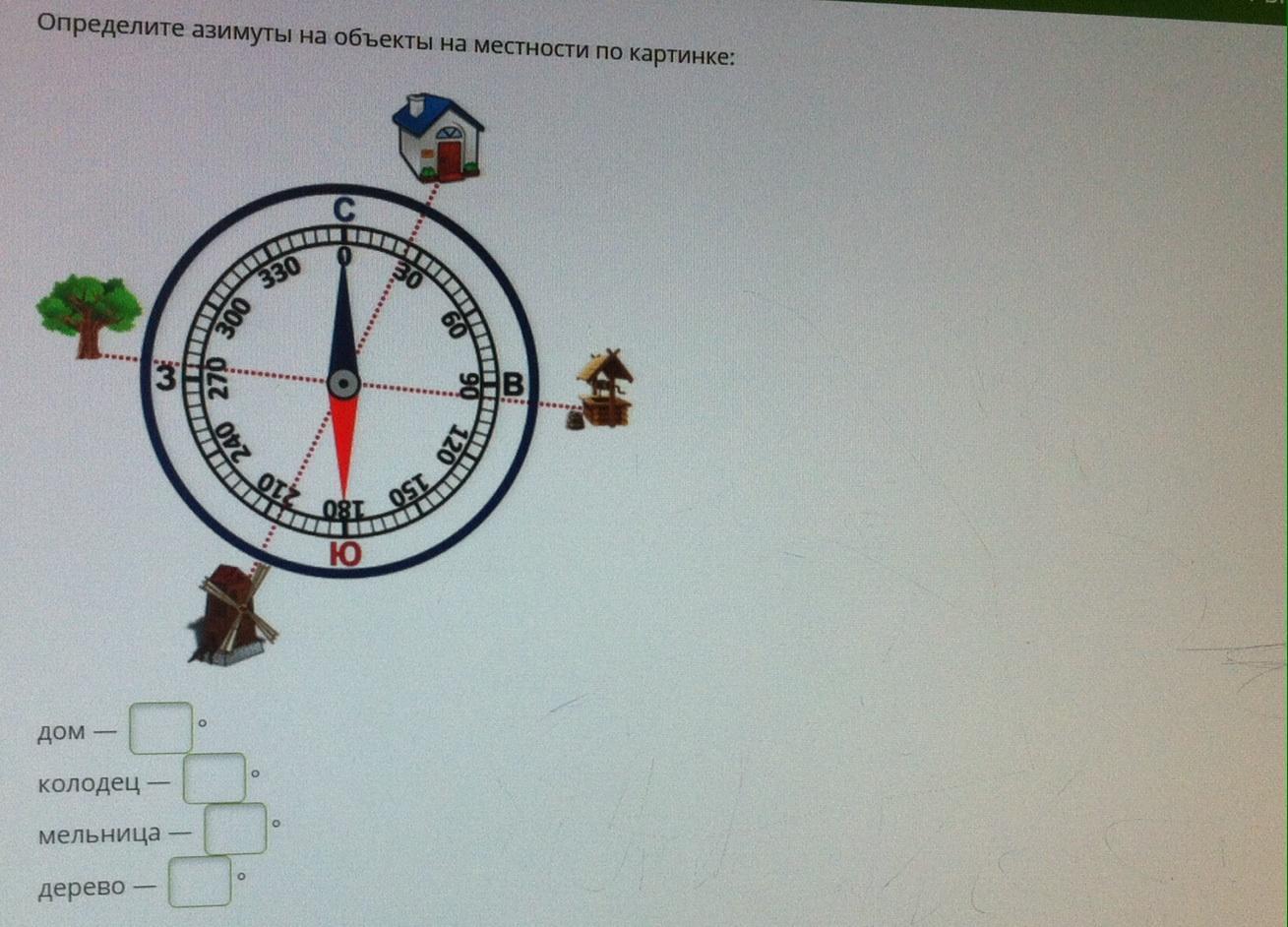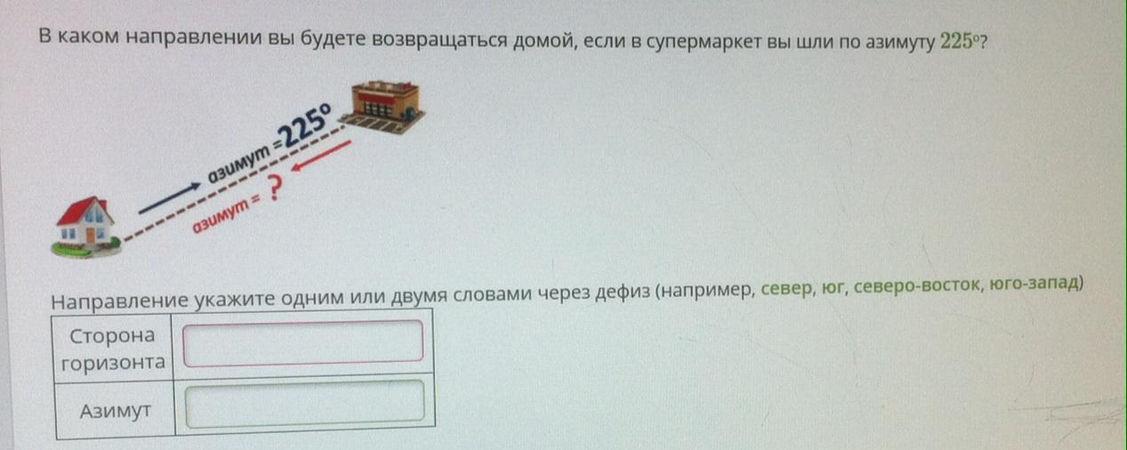 азимут - юго-запад, северо-запад,юго-восток,северо-восток
