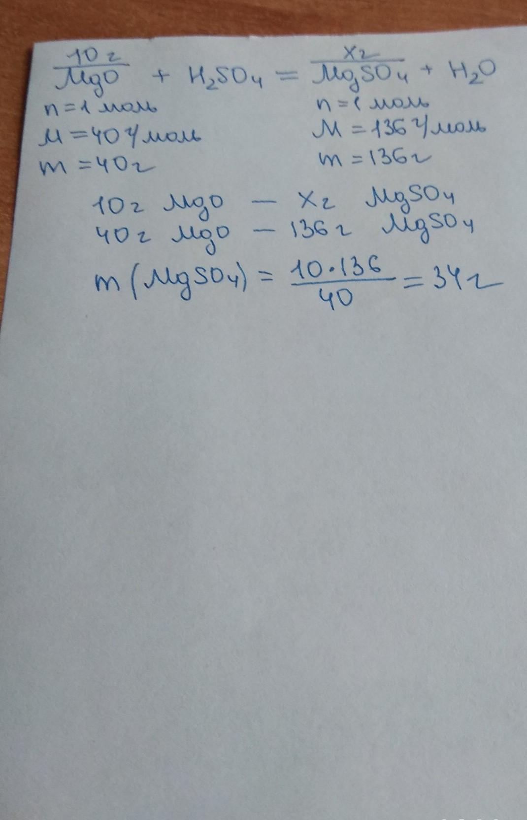 Определите массу сульфата магния образующегося в результате растворения в серной кислоте 10 г оксида магния