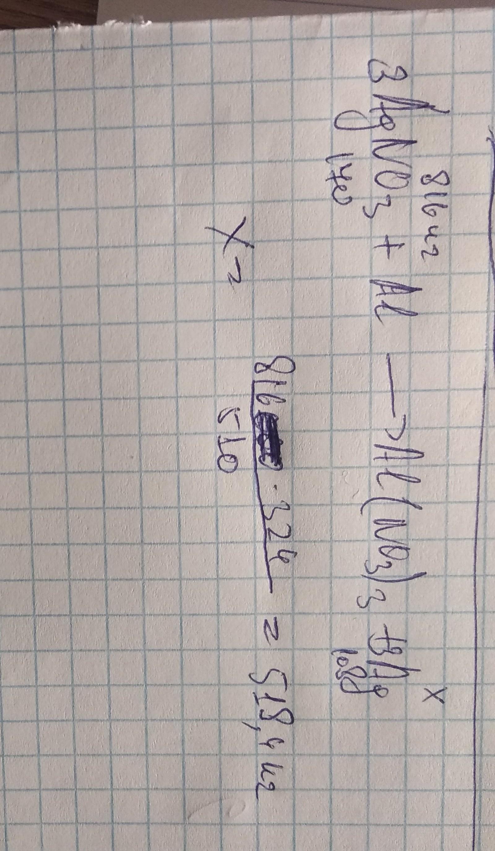 №3 Какую массу серебра можно получить при взаимодействии 816 кг нитрата серебра с избытком алюминия?