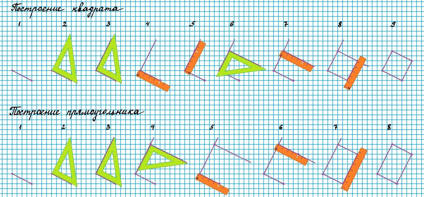 Квадрат на прикрепленной картинке. Прямоугольник аналогично (картинка 2, серое не рисуй, я просто показала, что это можно сделать из того же квадрата)