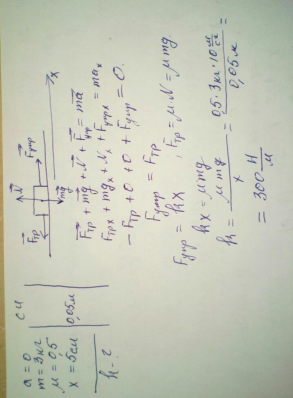 Тіло масою 3 кг, до якого прикріплена пружина, рівномірно тягнуть по поверхні стола, що має коефіцієнт тертя 0,5. Визначте жорсткість пружини, якщо вона видовжилася при цьому на 5 см. Вважайте, що g = 10 м/с².