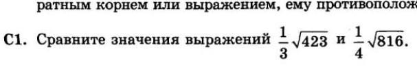 Сравните значения выражений 1/3 корень432 и 1/4 корень816.