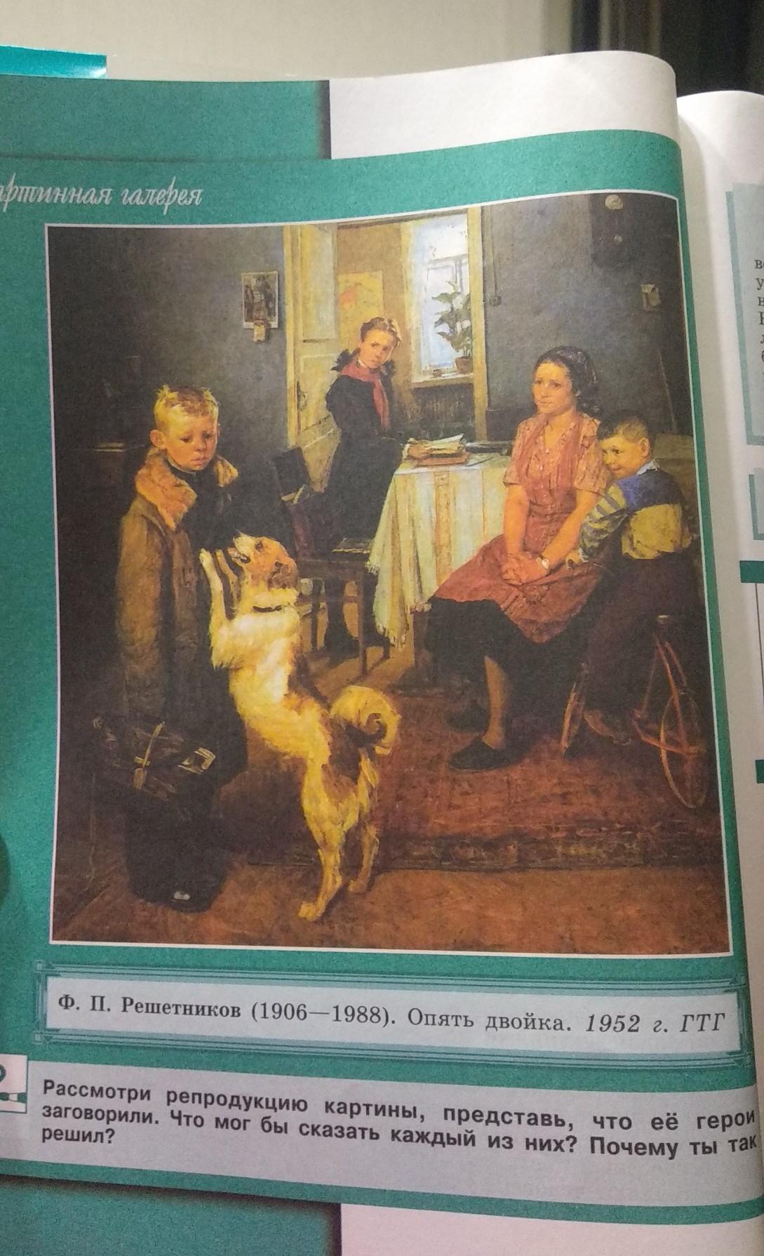 Это картина опять двойка. Я считаю, что если бы герои ожили они бы отнеслись к мальчику с соучастием и сочувствием. Но они бы указали бы ему на его вину. Мне кажется мама бы сказала ему как тебе не стыдно, дочка бы укоризненно вздохнула, а младший брат бы сказал маме, что никогда не будет так делать