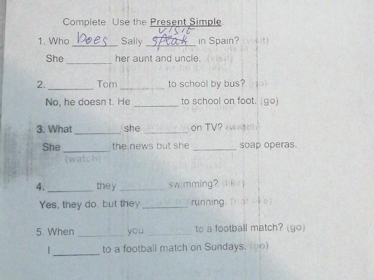 2.Does Tom go to school by bus?-Ni, he doesn’t. He goes to school on foot
