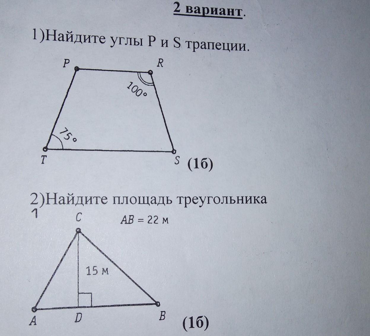 1) В трапеции есть две параллельные стороны, в данном случае PR и TS. Угол S - односторонний (RS секущая), 180-100=80