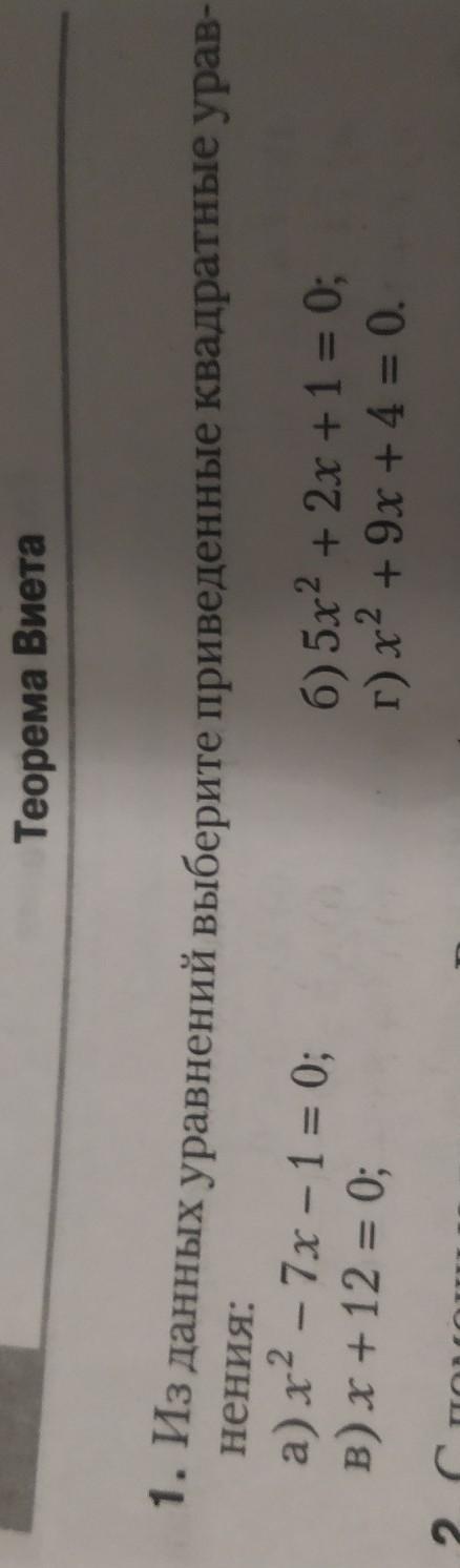 Объяснение: Приведенное квадратное уравнение это такое уравнение в котором первый коэффициент равен 1. Уравнение можно считать не приведенным если оно имеет первый коэффициент отличный от единицы. Обычно если первый коэффициент равен 1 то его не пишут. Например 1x^2 заменяют на x^2, во втором случае коэффициент 1 не написан но он подразумевается.